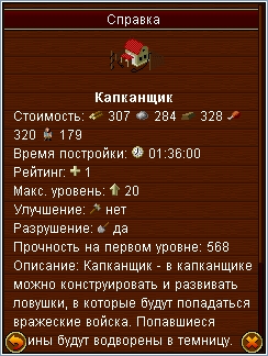 1)Капканщик это здание, которое ловит врагов при атаке. Это здание имеет максимальный лвл - 20. Каждый уровень вмещает 20 клеток(ловушек). Это получается 400 воинов.